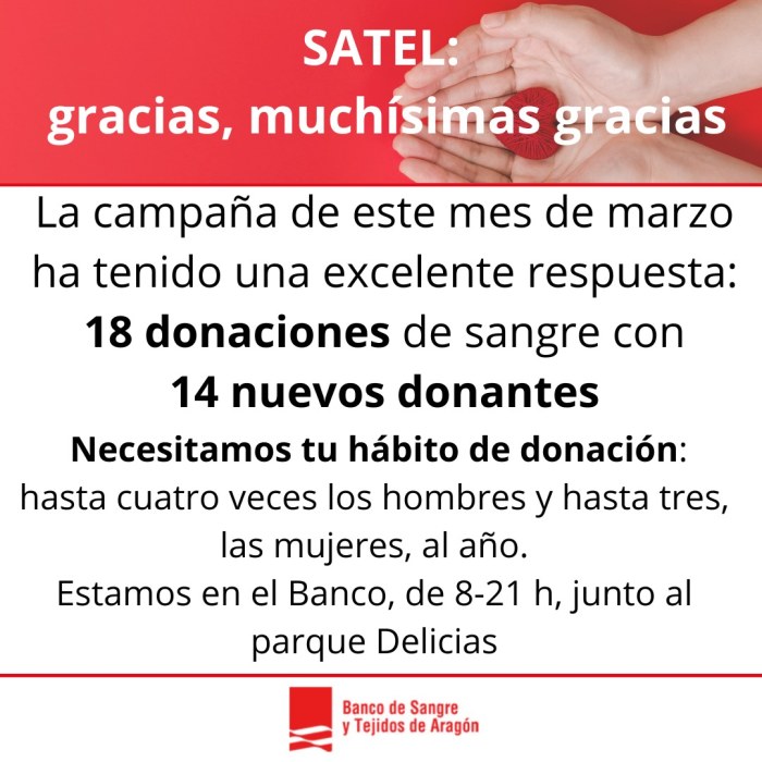 Jornada de donación de sangre de los trabajadores del centro de Zaragoza en colaboración con el Banco de Sangre y Tejidos de Aragón.